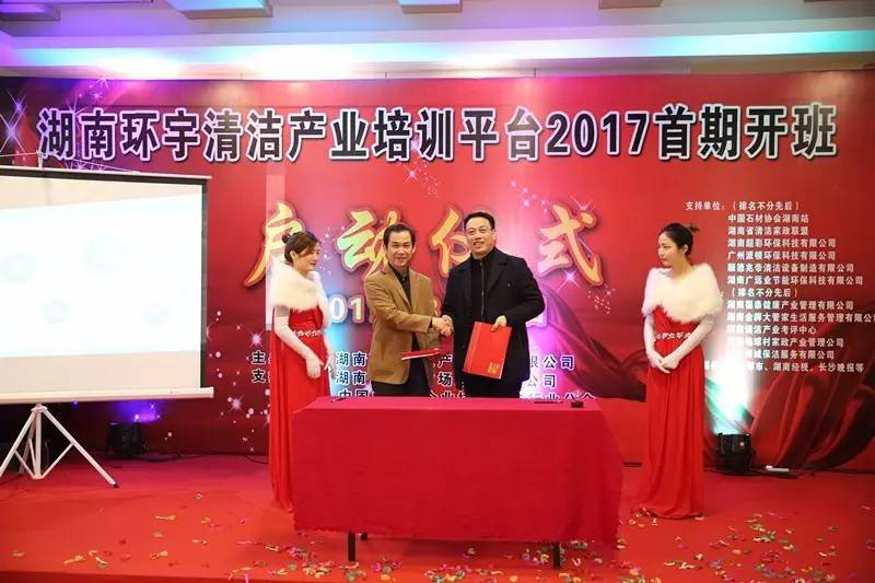 3月20日,在湖南高桥大市场酒店用品城盛大举行了湖南首期清洁产业培训启动仪式,湖南省家庭服务业协会秘书长杨飞、长沙市家庭服务业协会秘书长谭伟、湖南省家庭服务业协会清洁专业委员会委员会丁四喜、湖南清洁家政联盟主席邱程、湖南清洁家政联盟书记张少春、中国中小商业企业协会清洁行业分会会长李军等相关行业协会领导,高桥大市场副总经理叶启宏和高桥商业物管中心总经理黄定文,以及多家媒体代表共同出席了培训启动仪式。